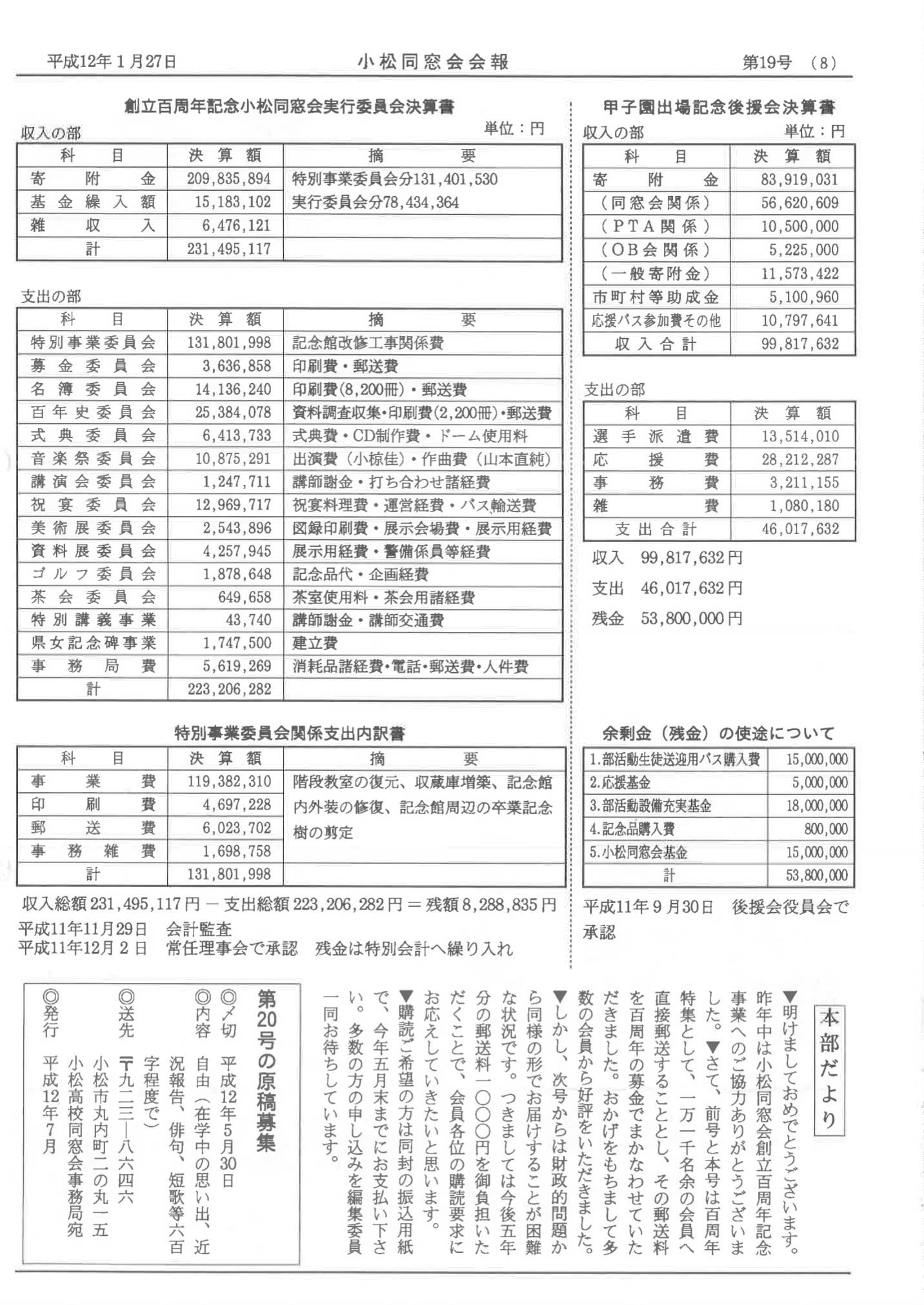 会報誌(天守台)