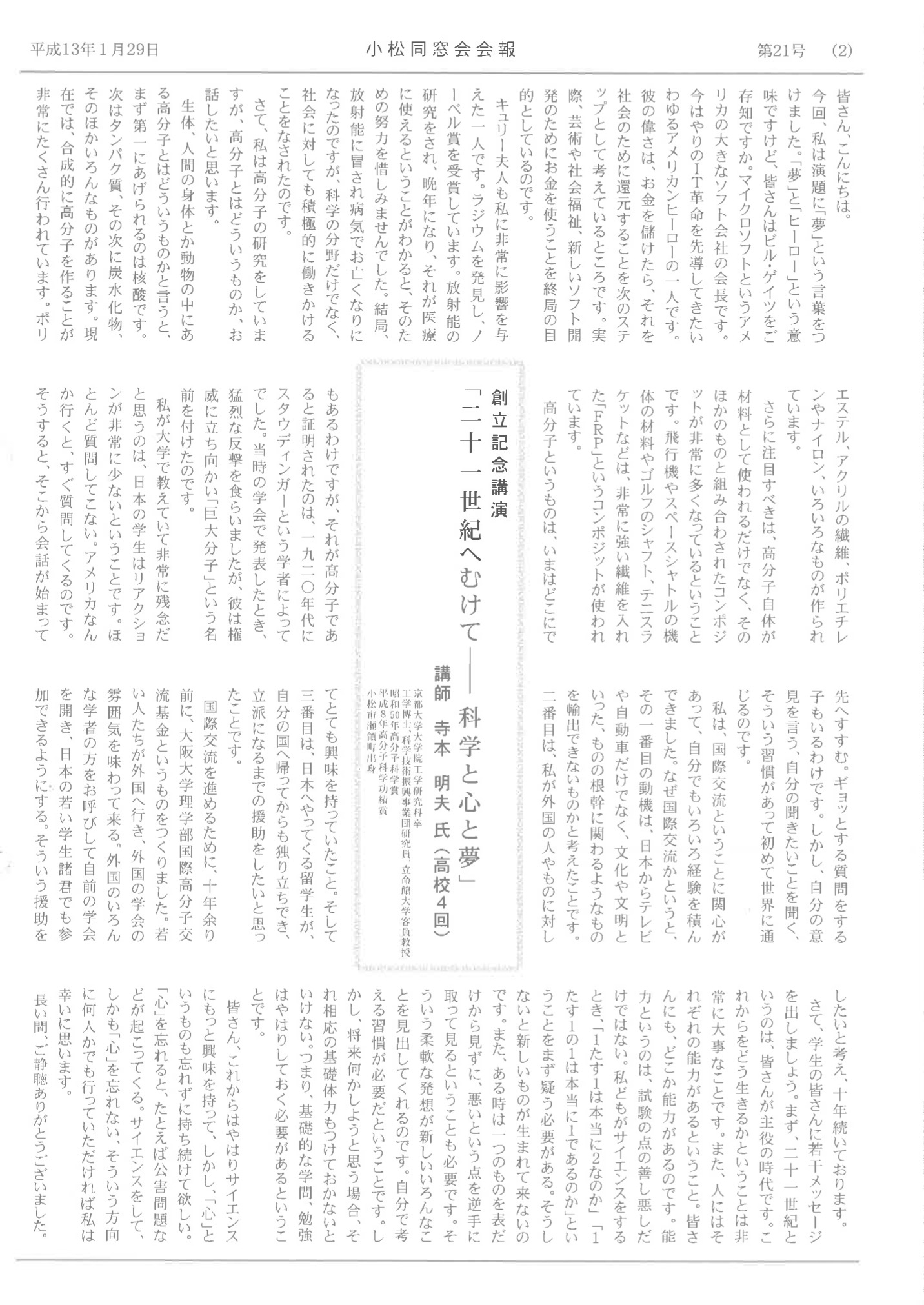 石川県立小松高等学校同窓会公式ページです。同窓会情報の確認、小松高校・小松同窓会の活動を発信しています。