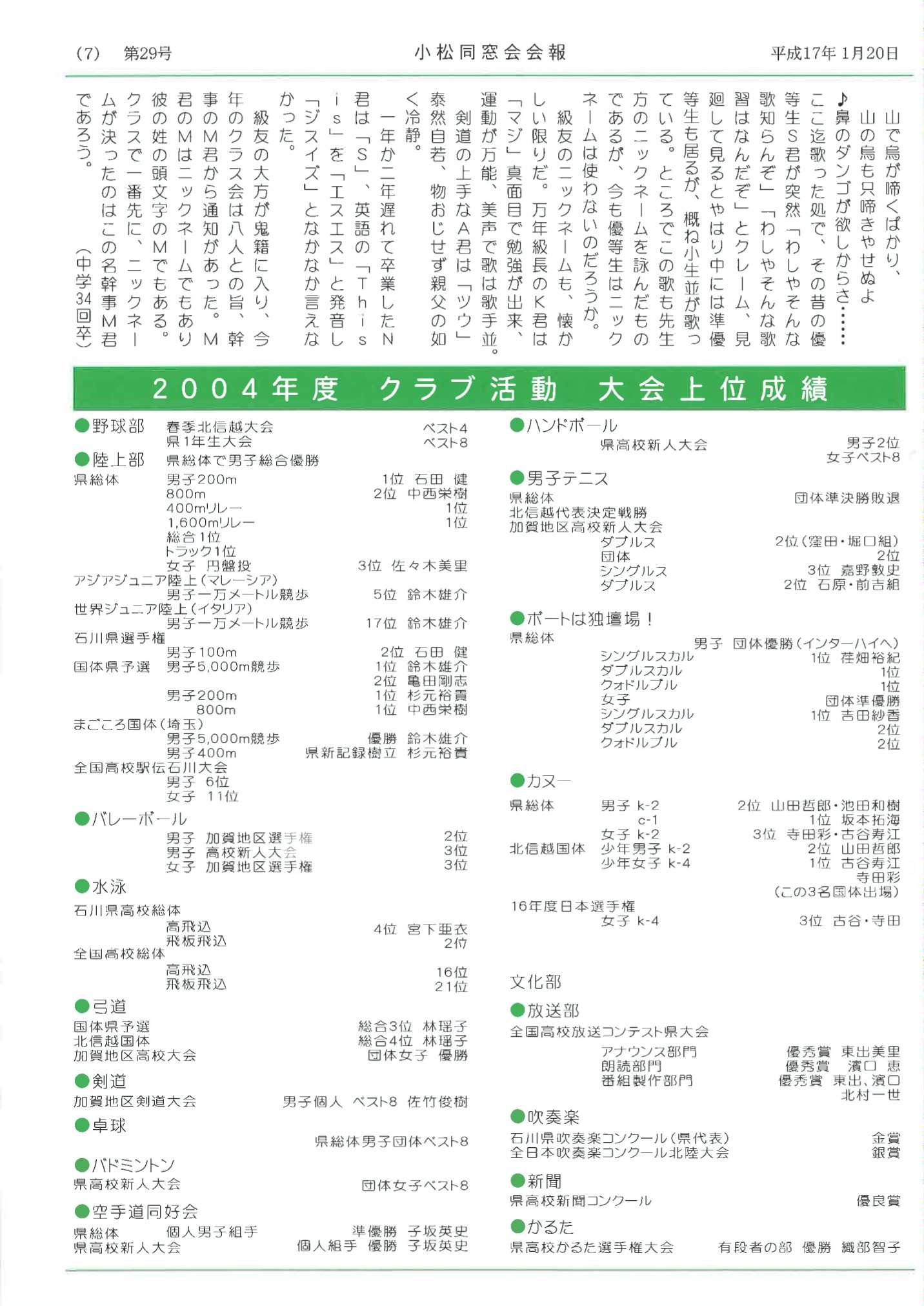 石川県立小松高等学校同窓会公式ページです。同窓会情報の確認、小松高校・小松同窓会の活動を発信しています。