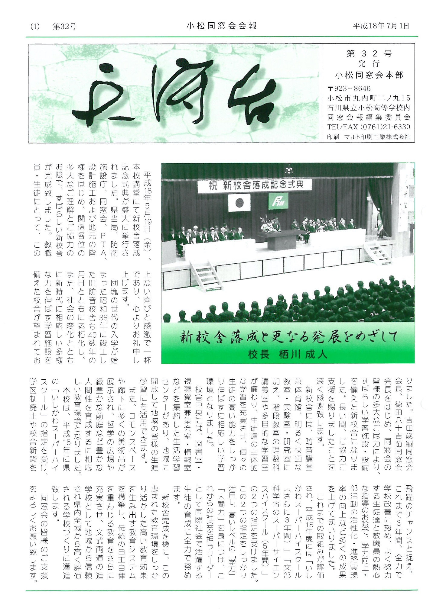 石川県立小松高等学校同窓会公式ページです。同窓会情報の確認、小松高校・小松同窓会の活動を発信しています。